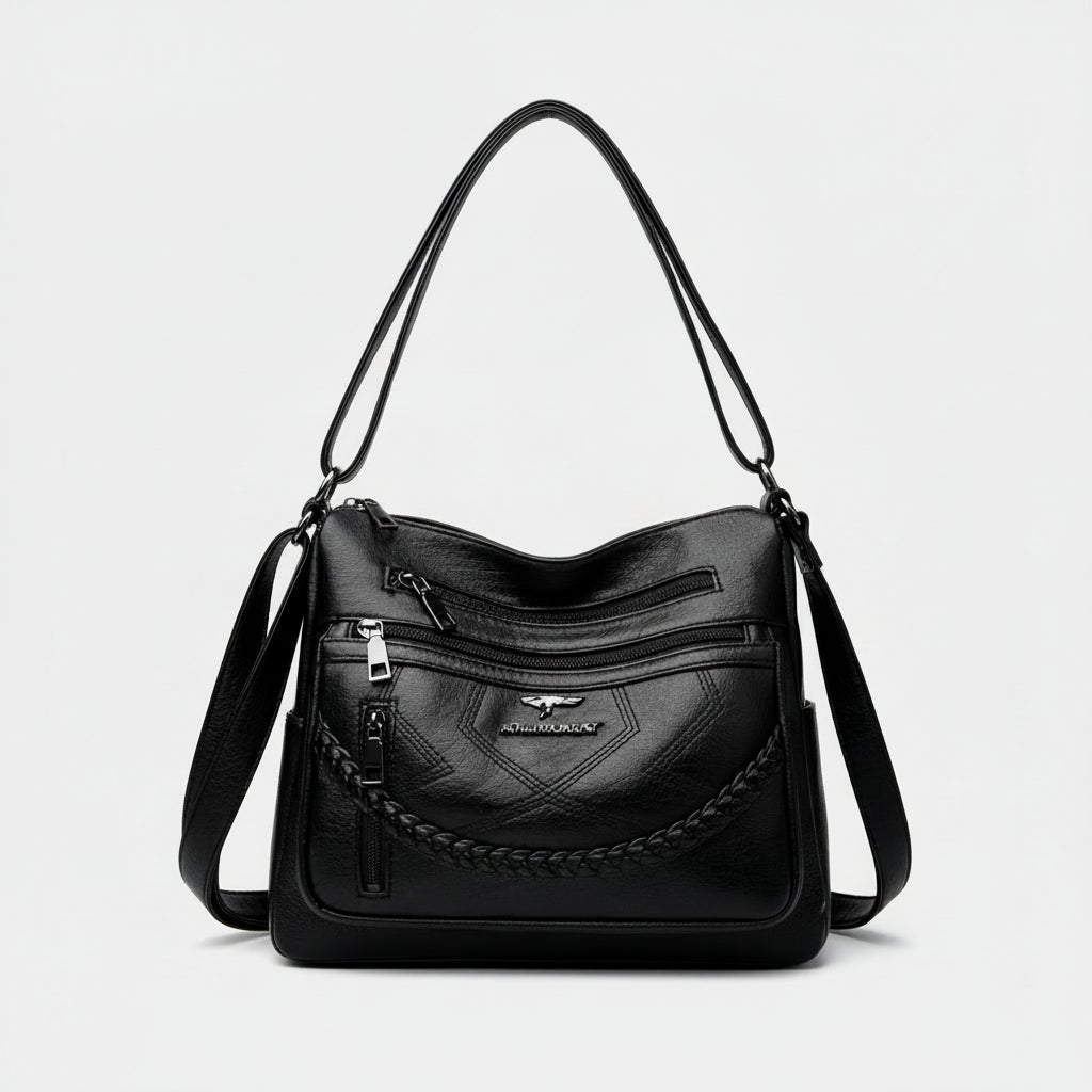 Praktyczna i elegancka torebka, która mieści codzienne niezbędniki i porządkuje je w oddzielnych kieszeniach. Miękki, wytrzymały materiał, lekka konstrukcja i regulowany pasek pozwalają wygodnie nosić ją przez cały dzień, do pracy, miasta i na wyjścia.
