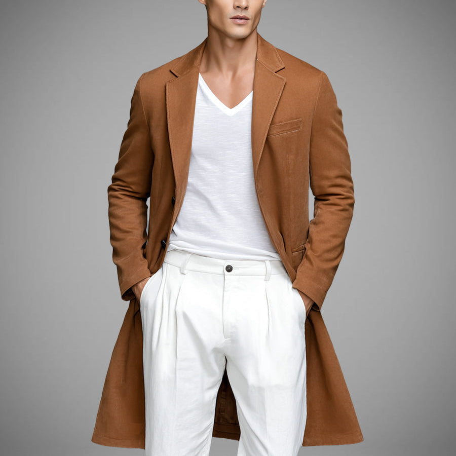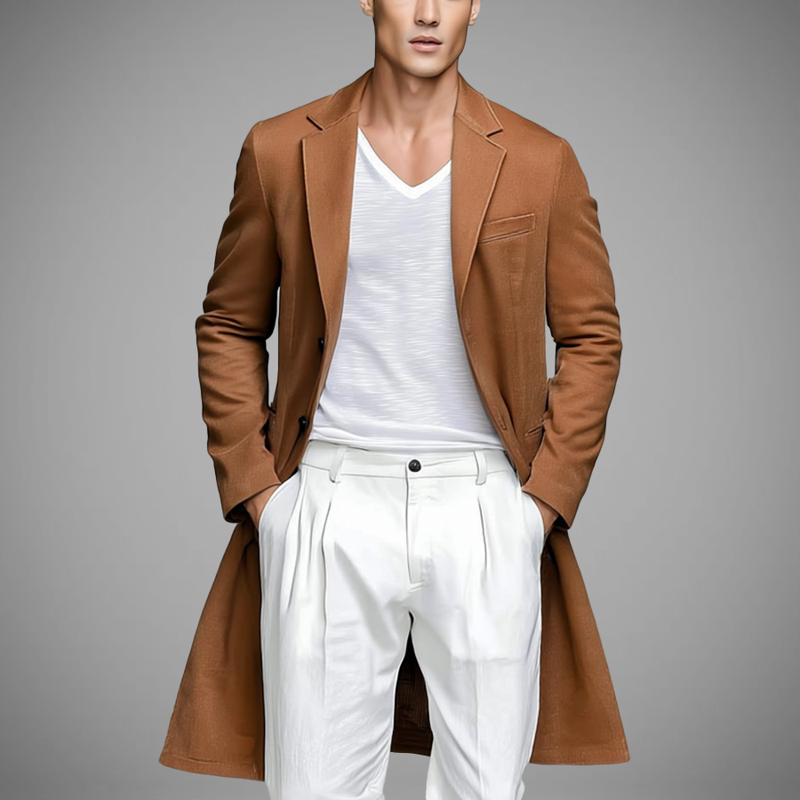 Dodaj do swojej garderoby Bartłomiej – brązową marynarkę płaszczową i ciesz się elegancją w lekkim, swobodnym wydaniu.